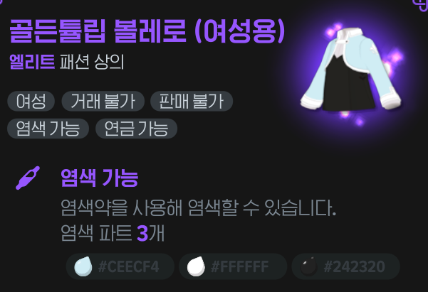 골든튤립 햇, 골든튤립 볼레로 (여성용), 골든튤립 스커트 (여성용), 골든튤립 슈즈 (여성용)