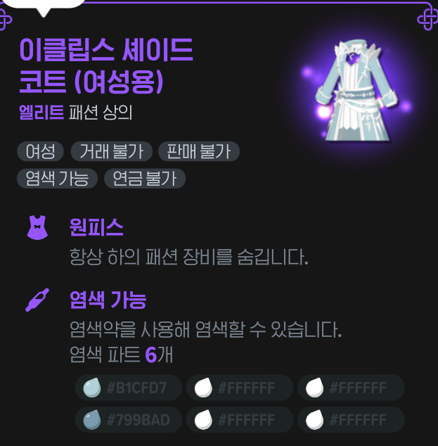 이클립스 셰이드 코트 (여성용) - 서큐버스 레이드 보상으로 교환하는 의상
