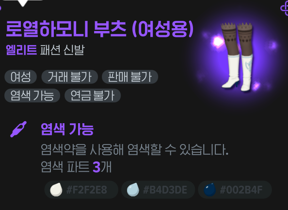로열하모니 캡, 로열하모니 제복 (여성용), 로열하모니 부츠 (여성용)