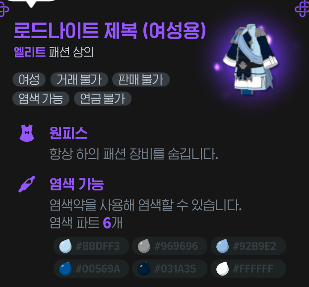 로드나이트 베레모, 로드나이트 제복 (여성용)